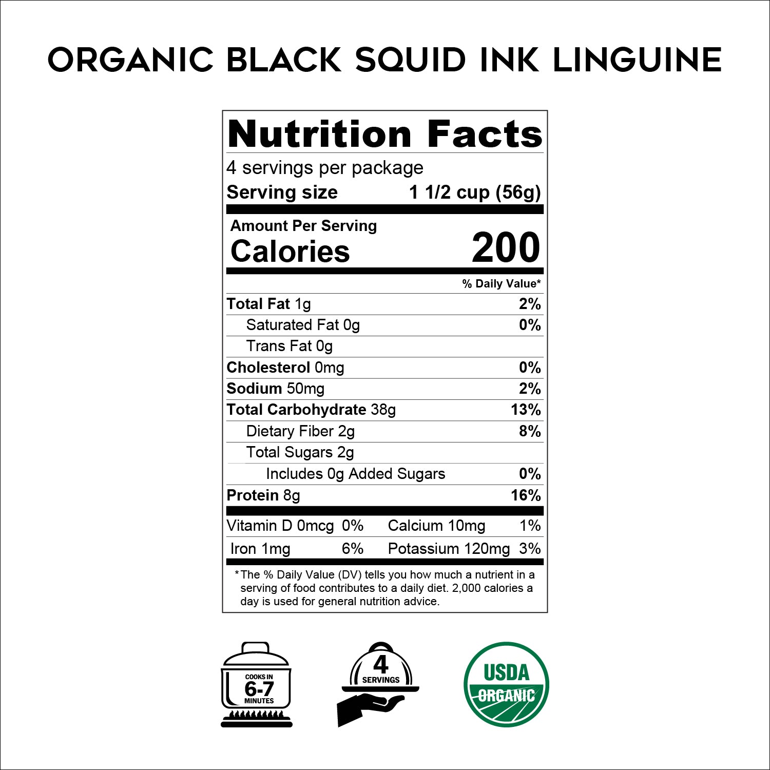 This unique organic pasta is infused with natural cuttlefish ink and in Italian is referred to as Nero di Seppia. This gives the pasta a carbon-like color and makes it an amazing ingredient to create beautiful dishes which make an impressive presentation.